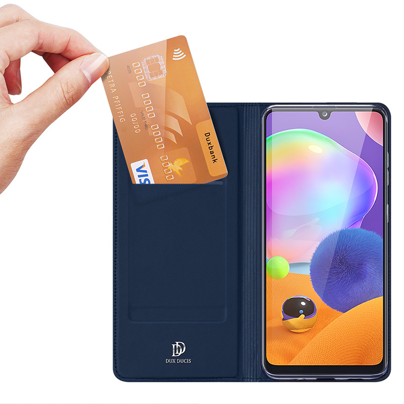 De slim wallet flip hoes van het merk Dux Ducis is speciaal gemaakt voor de Samsung Galaxy A31 (A315). Wanneer u kiest voor een Dux Ducis Samsung Galaxy A31 hoes, kiest u voor elegantie en een modieuze hoes die goed afgewerkt is en waar er goed gekeken is naar details. Het hoesje heeft een uniek design en is gemaakt van hoogwaardige kunstleer. Door het dunne design is het hoesje makkelijk mee te nemen.
